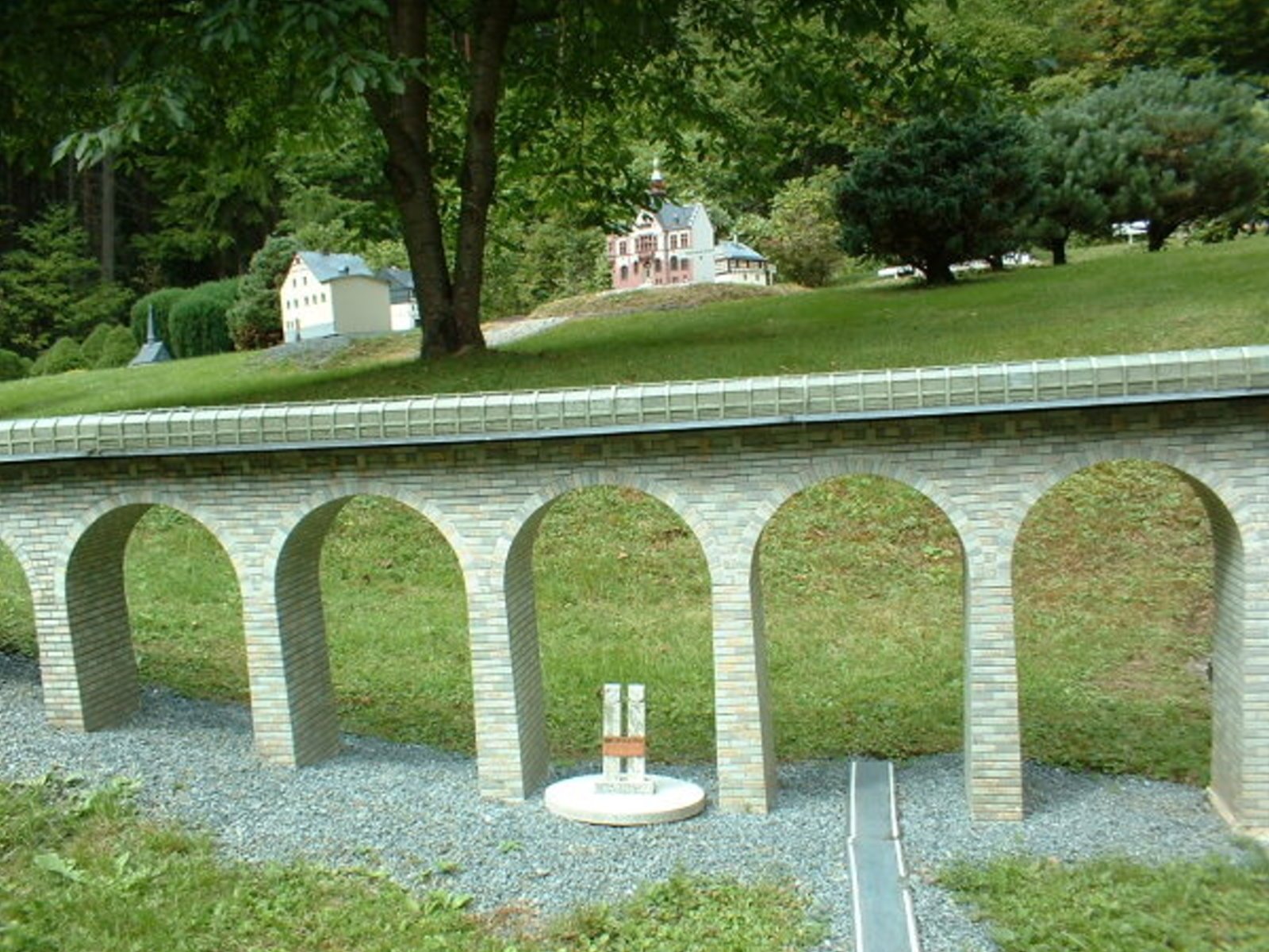 Die Miniatur Anlage Klein Vogtland in Adorf im sächsischen Vogtland in einem Silder
