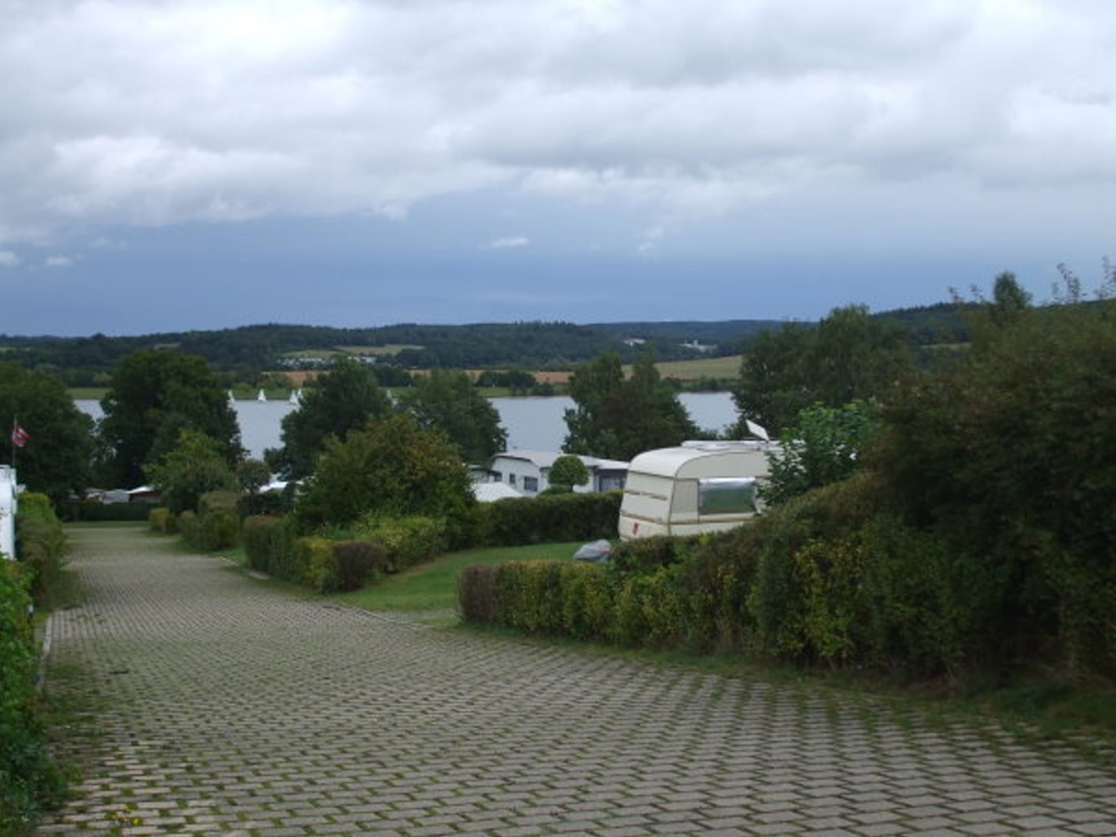 Der Stausee und Campingplatz Poehl im Dreiländereck Bayern, Sachsen und Thüringen.